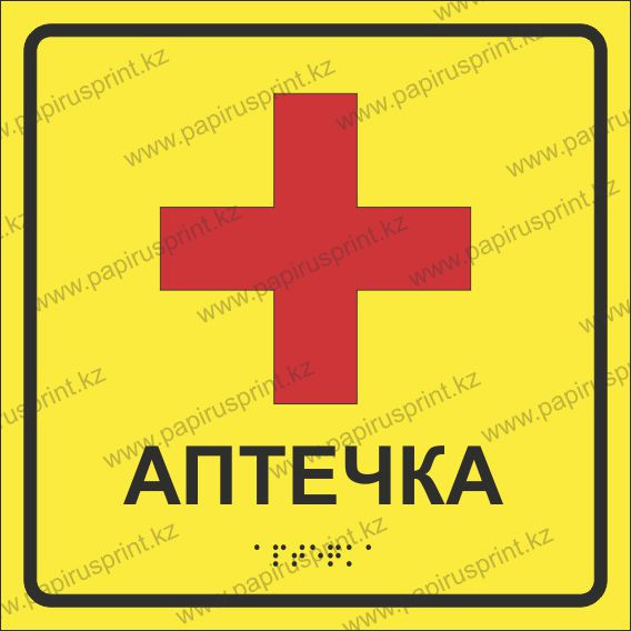 Тактильная пиктограмма «Аптечка» с дублированием шрифтом Брайля.